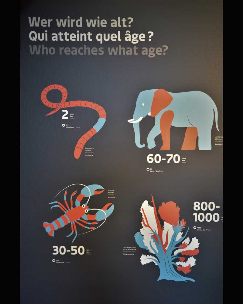 Pressebild 2: Wer wird wie alt. Maximal- und Durchschnittsalter verschiedener Lebewesen. Foto: Samuel Furrer