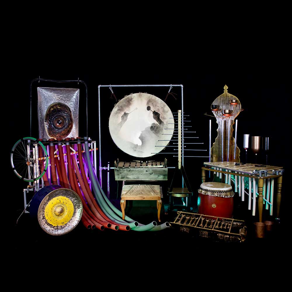«Upcycling Music» ist eine Ausstellung mit Musikinstrumenten und Klangkunstwerken, die der ladinische Multiinstrumentalist und Musiklehrer Max Castlunger aus Terlan im Südtirol aus alten und gebrauchten Materialien und Objekten entstehen lässt.