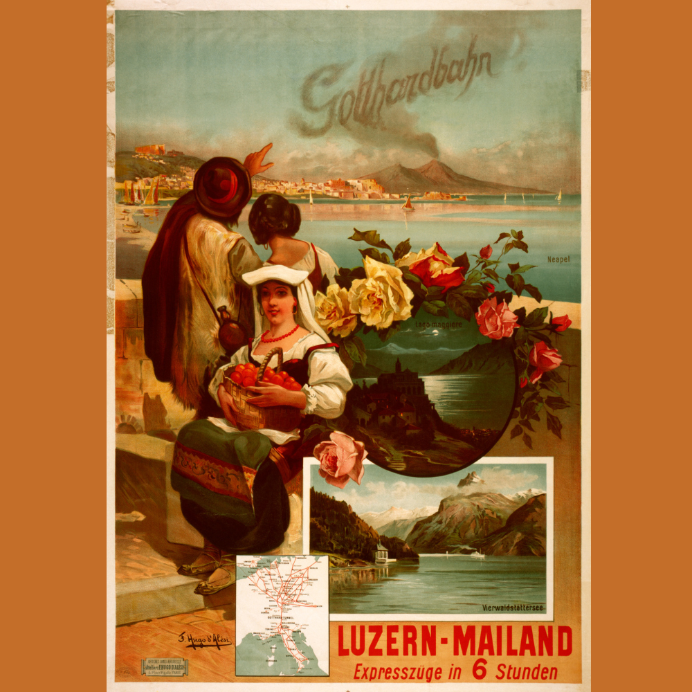 Bild: Plakat von Hugo d’Alesi um 1908, Nationalbibliothek aus «Drei Weltrekorde am Gotthard» von 2016.