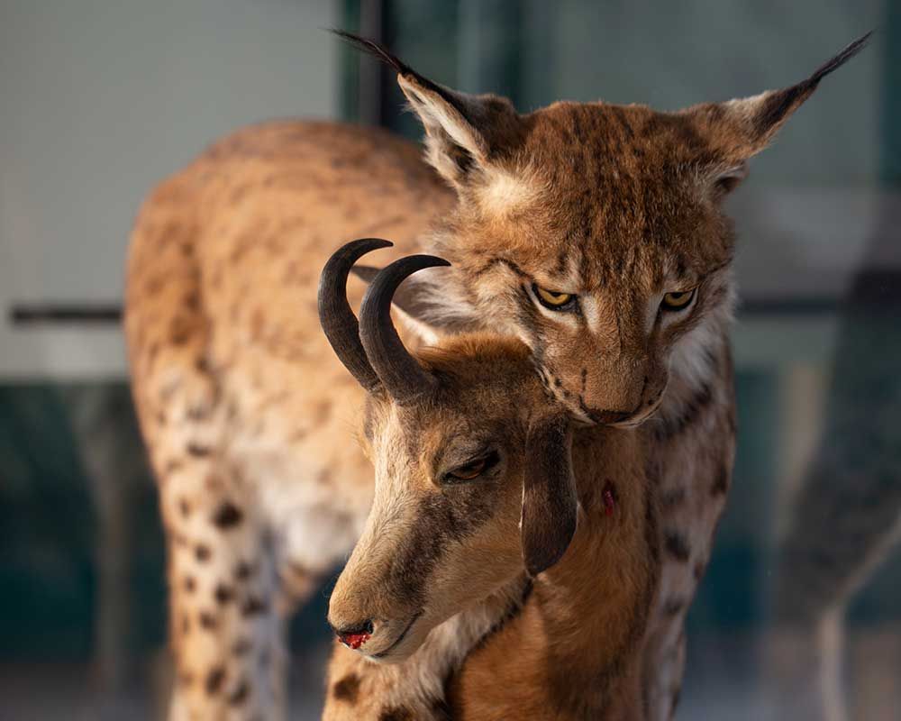 Bühne frei für «das grosse Fressen». In unserer biologischen Dauerausstellung dreht sich – fast – alles ums Fressen und gefressen werden. Der Luchs hier hat zum Beispiel eben eine Gämse erlegt.