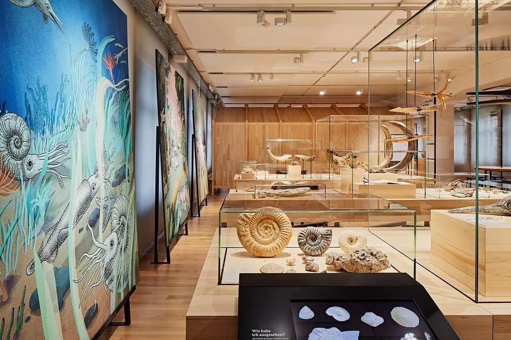 Willkommen in unserer geologischen Dauerausstellung! Hier können Sie dieses 1:1-Modell eines Fischsauriers finden, der vor fast 200 Millionen Jahren in der Region des heutigen Olten herumschwamm.